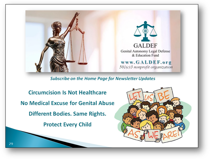 The importance of constitutionally guaranteed equal protection of children from genital cutting, regardless of sex, was outlined in Board member Dan MacClymont’s blog entry The Harm of Circumcision and the Call for Equal Protection in the United States.