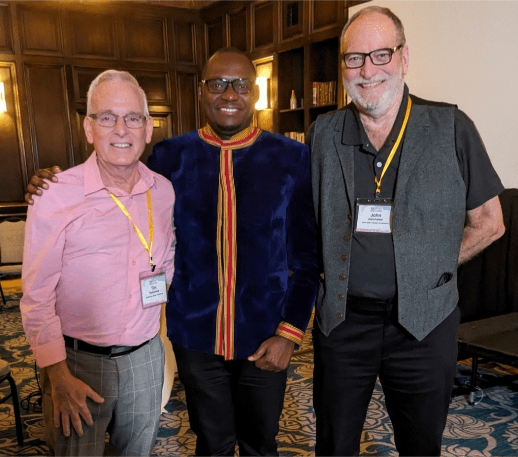 Conference speakers (L to R): Executive Director Tim Hammond, Ugandan human rights attorney Michael Aboneka, and Doctors Opposing Circumcision Director John Geisheker.