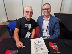 The Darbon Institute and GALDEF purchased booth space at the congress to promote Jonathan Meddings’ book: The Final Cut: The truth about circumcision. The booth space proved to be an invaluable focal point for the many one-on-one conversations that occurred with congress attendees, likely contributing to the success at the Uncut Voices symposium. Jonathan Meddings, Tim Arkell, Jason Simmons and Lachlan Sutherland from the Darbon Institute, as well as Tim and Leif from GALDEF, spent many hours engaged in one-on-one conversations with congress attendees.